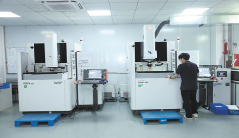 公司擁有先進(jìn)的加工及檢測設(shè)備,主要設(shè)備有瑞士夏米爾和日本沙迪克火花機(jī)、日本西部和瑞士夏米爾慢走絲、臺灣宇青磨床、大水磨、中走絲、快走絲、電腦鑼、銑床等生產(chǎn)設(shè)備,投影儀、二次元、高度儀、顯微鏡、壓機(jī)等精密加工檢測設(shè)備。